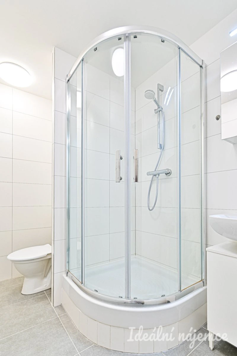 Byt je po kompletní rekonstrukci, tudíž nabízí výhodu prvního podnájemníka. Byt se nabízí vybavený dle fotografií. Kuchyně disponuje elektrickou troubou, varnou deskou a digestoří. Koupelna je zařízena sprchovým koutem, umyvadlem s praktickou skříňkou a toaletou. Výhodou je taktéž menší šatna na úschovu věcí a to přímo v bytě.