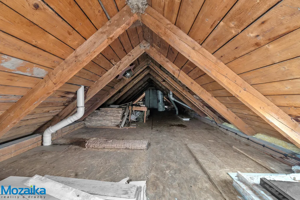 Jedná se o dvoupodlažní cihlový dům bez podsklepení, jehož celková užitná plocha činí 322 m2. Zastavěná plocha domu a nádvoří dosahuje 446 m2, zatímco přilehlá zahrada o rozloze 729 m2 poskytuje dostatek prostoru pro odpočinek, zahradničení nebo rodinné aktivity. Dům je obklopen oplocenou zahradou, která zajišťuje soukromí a klidné prostředí. V přízemí se nachází bytová jednotka o dispozici 3+1, která zahrnuje kuchyň, tři prostorné pokoje, spíž, kotelnu a sklad paliv. Tato část domu je připravena k dokončení, a nový majitel tak může popustit uzdu své představivosti a přizpůsobit ji svým potřebám. Podkrovní bytová jednotka o dispozici 3+kk s lodžií je naopak ve stavu umožňujícím okamžité nastěhování. Díky tomu je nemovitost ideální i k dvougeneračnímu bydlení, přičemž obě bytové jednotky lze oddělit a zajistit tak maximální soukromí obyvatel.