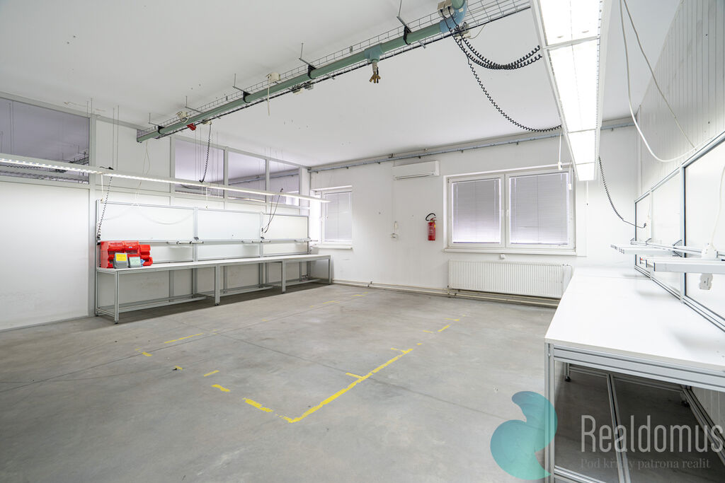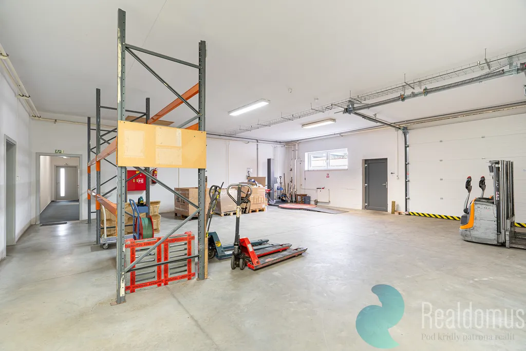 Administrativní část (200 m2) tvoří 3 kanceláře, přijímací hala, archiv, kuchyňka a WC pro administrativní pracovníky a přístupová chodba.
