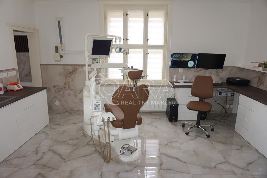 Nabízíme k pronájmu zavedenou zubní ordinaci v centru Ústí nad Orlicí. Samotná ordinace má cca 25 m2 plus skladová komora, samostatná čekárna s WC a součástí je též RTG místnost a úklidová komora. Celá ordinace i čekárna prošla stavební rekonstrukcí. K ordinaci je možno odkoupit zavedené s.r.o. s kmenem pacientů a smlouvami s pojišťovnami nebo je možno místo nájmu příjmout zubního lékaře jako zaměstnance. Přímo v objektu je také fungující zubní laboratoř. V případě zájmu je možno dále pronajmout i druhou ordinaci v patře objektu, stejně jako byt, který se v patře rovněž nachází. Pronájem či odkup vybavení je předmětem dohody, stejně jako využití v jiném oboru než zubní medicíny. Nájemné 30.000,- Kč plus spotřebované energie.