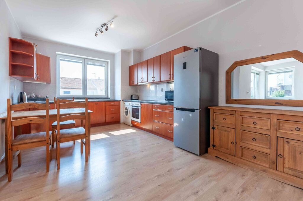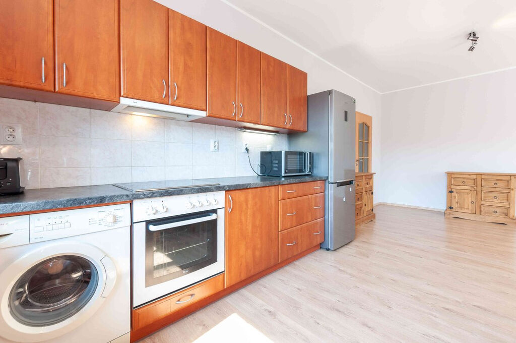 Byt se nabízí částečně vybavený. Kuchyně disponuje lednicí, pračkou, troubou a sklokeramickou deskou.  V koupelně se nachází vana i sprchový kout. WC je odděleno.