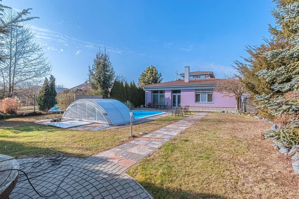 Dům byl postaven v roce 2013 pečlivě a z kvalitních materiálů a jeho celková zastavěná plocha činí 330 m², z toho užitná plocha je 280 m², což vám poskytne bohatý prostor pro komfortní žití. Dům je situován na pozemku o celkové ploše 1.193m2, což zahrnuje zastavěnou plochu + udržovanou rovinatou zahradu s velkým krytým bazénem a zahradním domkem + dlážděný dvůr před domem nejen k pohodlnému parkování, a to vše utváří funkční celek. Zázemí domu tak poskytuje ideální prostor pro oslavy s rodinou nebo přáteli, stejně tak pro klidnou relaxaci v soukromí na čerstvém vzduchu.