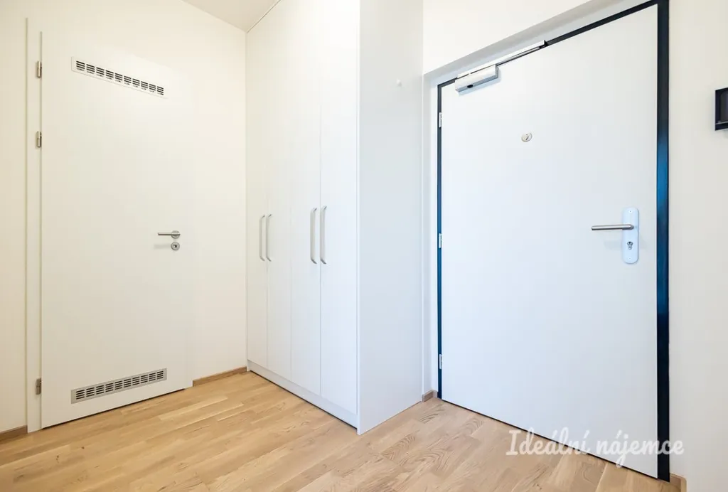 Díky vestavným šatním skříním a komoře disponuje byt velkým množstvím úložného prostoru.