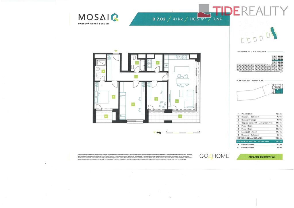 Tento konkrétní byt 4+kk o podlahové ploše 118,5m2 se dvěma lodžiemi 21m2 se nachází v 7.NP desetipodlažní budovy "B". Tento prostorný a velmi světlý byt ve vysokém patře bude nabízet krásné jihozápadní výhledy z OP i ze všech tří ložnic i navazující prostorné lodžie. K dispozici budou dvě koupelny (vana i sprcha) a komora s prostorem i rozvody pro pračku i sušičku. K tomuto bytu jsou na výběr min. 2 parkovací stání venkovní/vnitřní a sklep (není zahrnuto v ceně). V celém projektu je velký výběr bytů 3,4,5+kk v rozmezí 88 až 120m2 i s prostornými terasami nebo se zahrádkami. Samozřejmě můžete vybírat i mezi byty 1,2+kk.