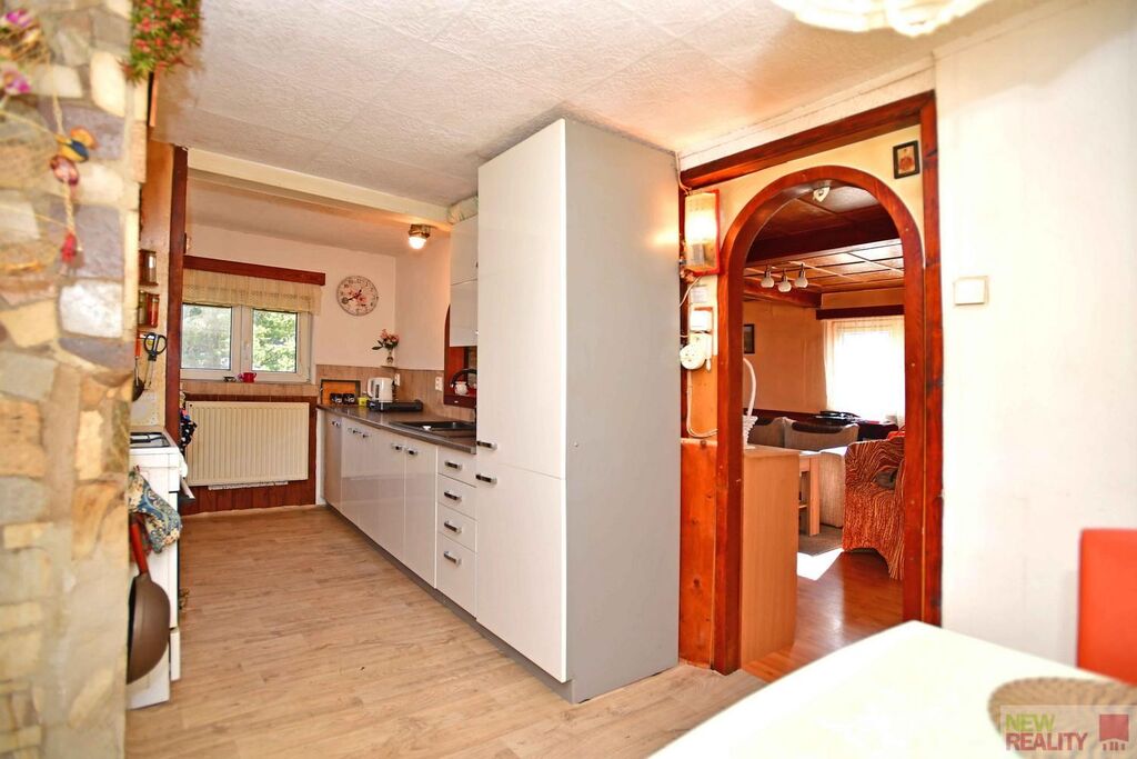 Přízemí světlý obývací prostor s dostatkem oken, kuchyňská část s novou linkou a spotřebiči, další pokoj, koupelna a toaleta s výpustí do jímky.