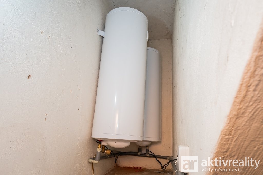 A nakonec je zde garáž a technické místnosti s bojlery na ohřev vody a plynovým kotlem pro vytápění.