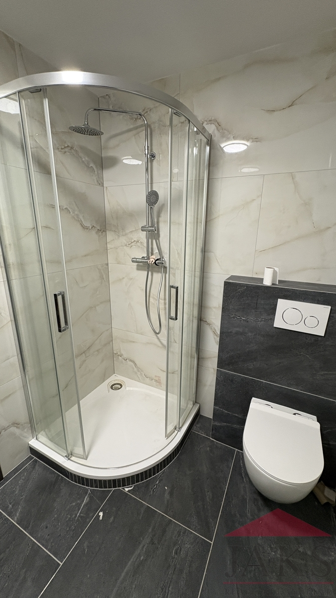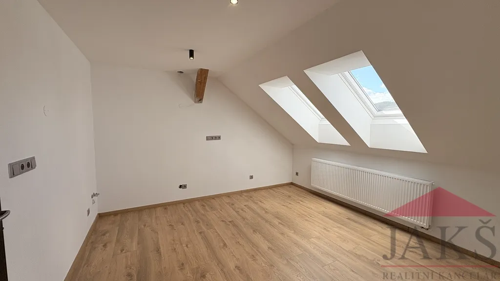 Vysoký standard vybavení: prvotřídní baterie vč. komfortního ovládání, velkoformátové obklady, střešní okna velux, kvalitní vinylové podlahy s motivem dřeva a dýhou;