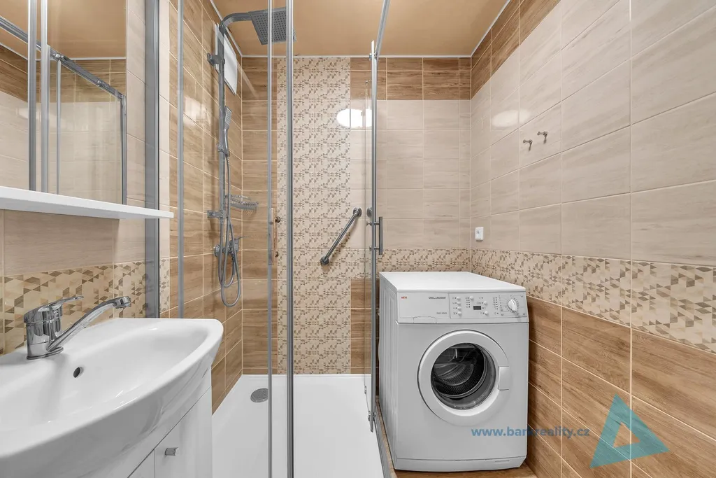 Nemovitost je orientována na severní i jižní stranu a disponuje veškerým vybavením, včetně kuchyňské linky, lednice, sprchového koutu, telefonní přípojky a připojení k optickému internetu. Vytápění je zajištěno ústředním dálkovým topením a k dispozici je také výtah.