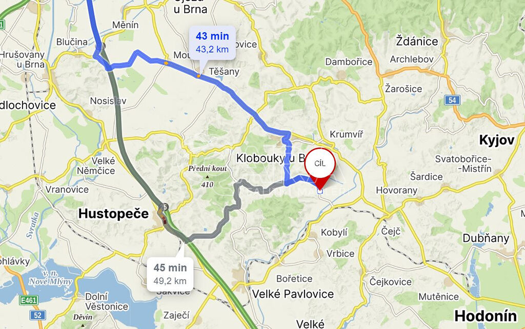 Dostupnost autem do Hustopečí 7 min., do Klobouk u Brna 20 min., do Brna cca 45 min.