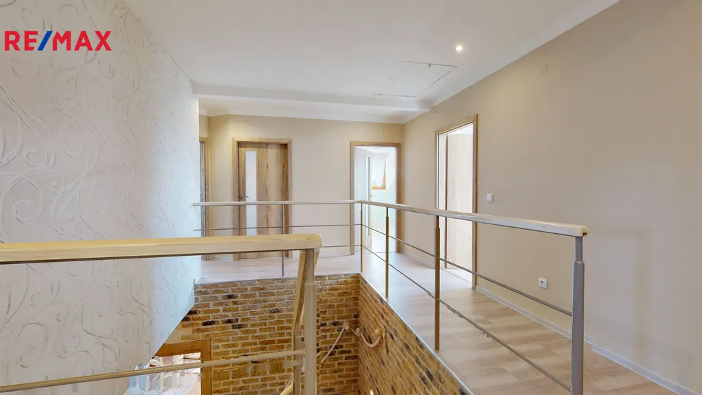 2 NP: galerie, koupelna se sprchovacím koutem a WC 8m2, pokoj 22 m2, pokoj 20 m2, pokoj 16 m2, se vstupem na lodžii 16,5 m2 (jihovýchodní orientace) a výstupem do dalšího pokoje 19 m2, šatna 11 m2, pokoj 18,5 m2.