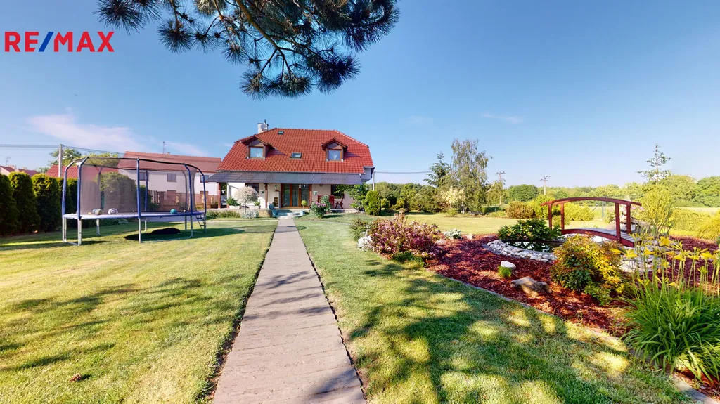 Za domem je vybudovaná okrasná zahrada, včetně zděného grilu, s udírnou, zahradního jezírka a kopané studny.