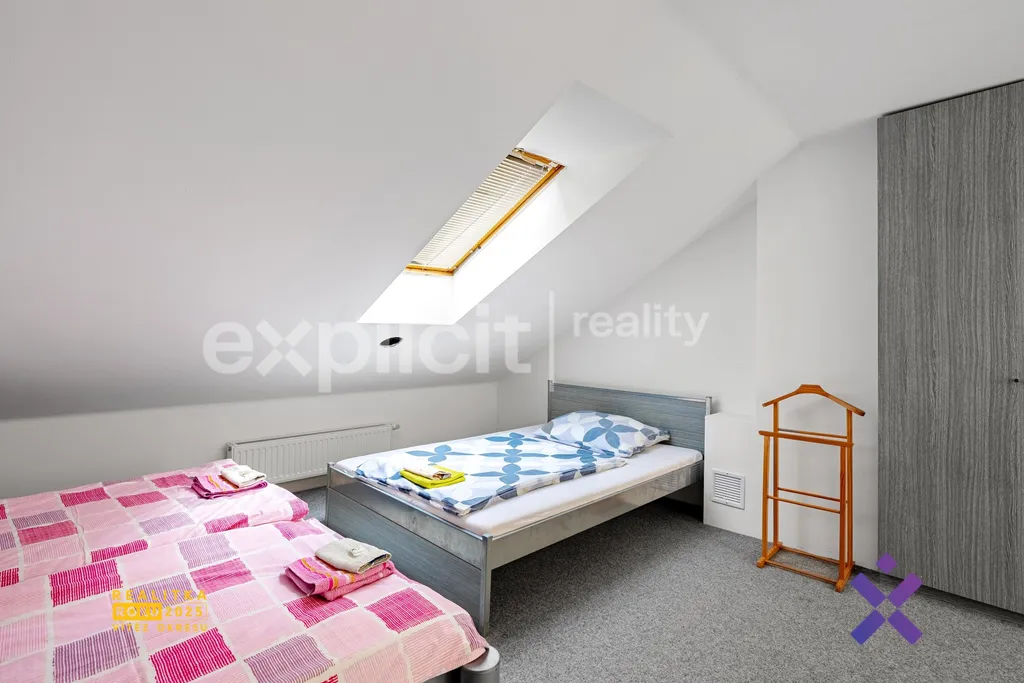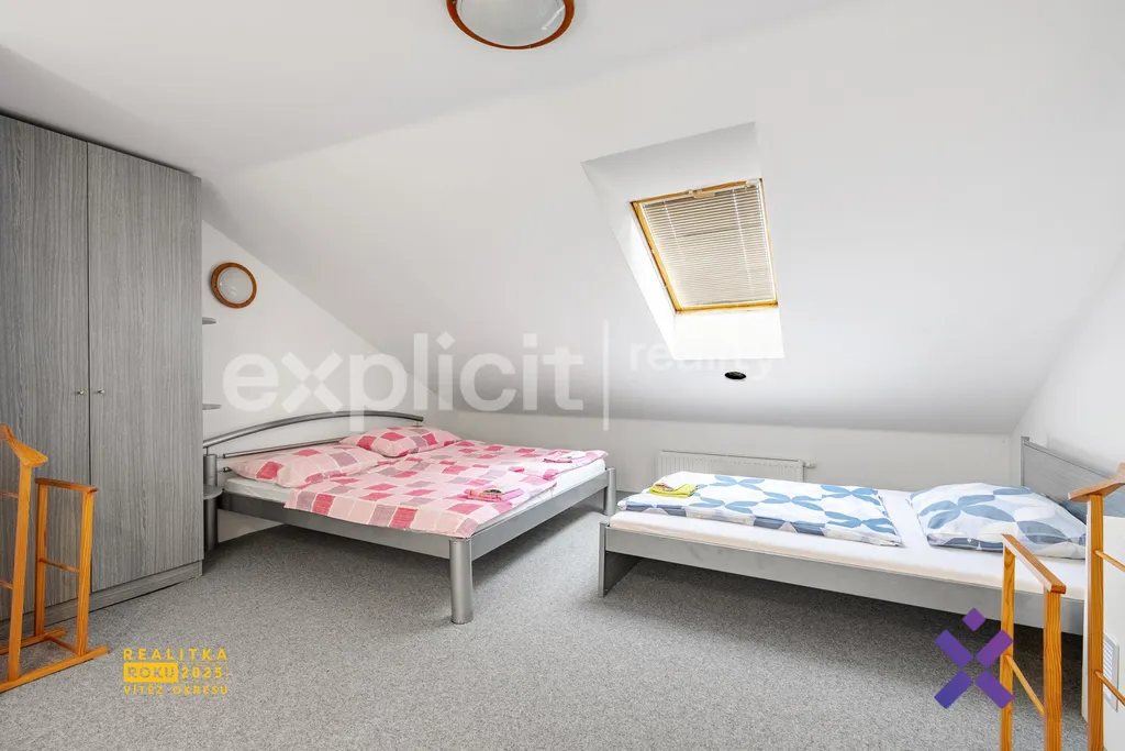 V horním patře se nachází čtyři vybavené samostatné pokoje, každý s vlastní koupelnou a toaletou. Tyto pokoje v současné době slouží jako penzion a poskytují stabilní příjem z krátkodobých i dlouhodobých pronájmů. Kromě toho je zde také kompletně vybavený byt, který může sloužit jako zázemí pro majitele nebo další možnost pronájmu.