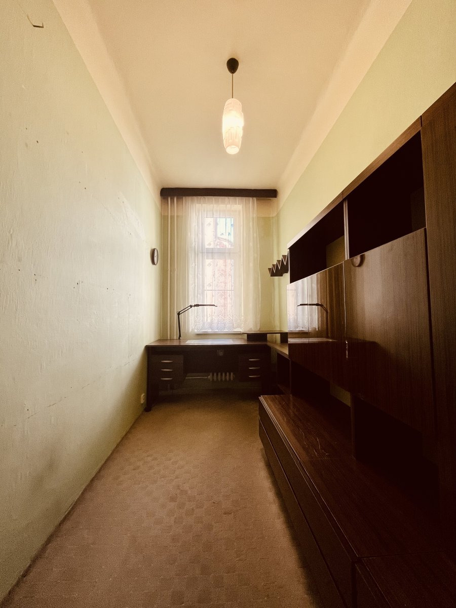 V dalších dvou neprůchozích pokojích také najdeme skříně. Ten velký je vhodný, jako samostatný pokoj a ten druhý, menší s psacím stolem např. na pracovnu.