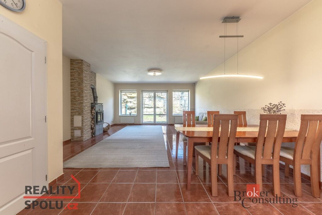 Dům stojící na vlastním pozemku o velikosti 612 m2 je obklopen přijemnou zahradou, která je v soukromé části ohraničena půvabnou pískovcovou skálou. Jádrem domu je prostorná a světlá hlavní místnost s kuchyní, spíží, jídelním koutem a obývacím pokojem s krbovými kamny. K dispozici jsou dále tři prostorné ložnice, které poskytnou dostatek soukromí i větší rodině. Z obývacího pokoje i dvou ložnic lze vyjít přímo na zahradu. Výhodou domu je samostatná pracovna/hobby místnost, která se nachází přímo za garáží směrem do zahrady. Lze odtud zcela nerušeně pracovat on-line nebo se věnovat vlastním projektům. Prostorná wellness koupelna má instalovanou moderní infrasaunu. K dispozici jsou i dvě WC. V domě je dostatek úložných prostor jak ve vestavěných skříních, tak i ve třech komorách či na prostorné půdě. Auto lze zaparkovat v prostorné garáži s vraty na dálkové ovládání nebo na pozemku před garáží. O vytápění domu se stará elektrický kotel a dům je připojen na veřejný vodovod i kanalizaci. Plynová přípojka je též k dispozici. Dům je chráněn elektronickým zabezpečovacím systémem včetně kamer a vysokorychlostní internet zajišťuje kvalitní on-line dostupnost všech obyvatelů domu. Na pozemku je jak vlastní vrtaná, tak i kopaná studna. Obec Sluhy i nedaleký Mratín nabízejí veškerou potřebnou občanskou vybavenost a do Prahy je možné dojíždět jak autem, tak i pražskou integrovanou dopravou. Dům má velice příjemnou atmosféru a dobrou energii pro příjemný život. Doporučujeme k osobní prohlídce.