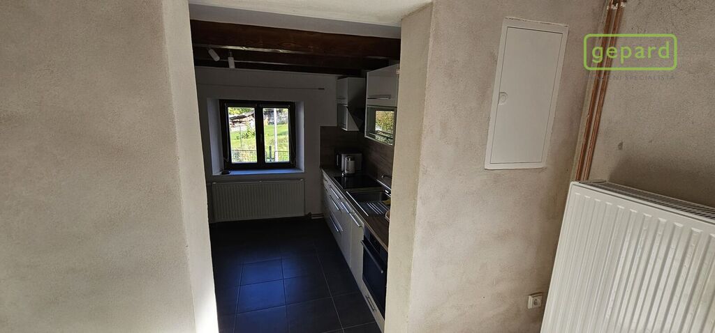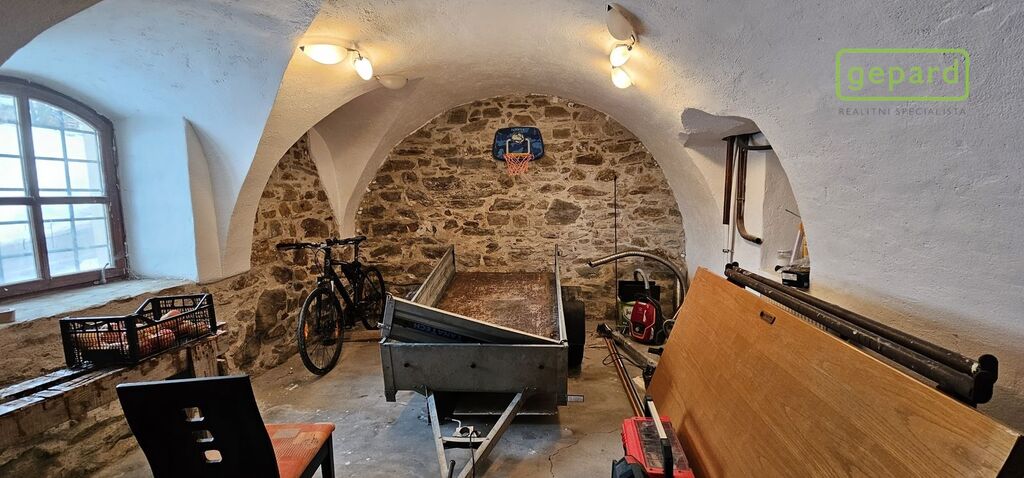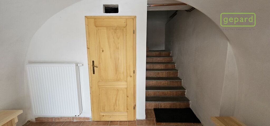 Druhá část domu má samostatný vstup ze zahrady za domem, tak i vstupem z kuchyně v patře domu, kterým se dostaneme do první místnosti, která může sloužit například jako pracovna.