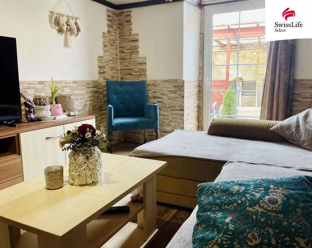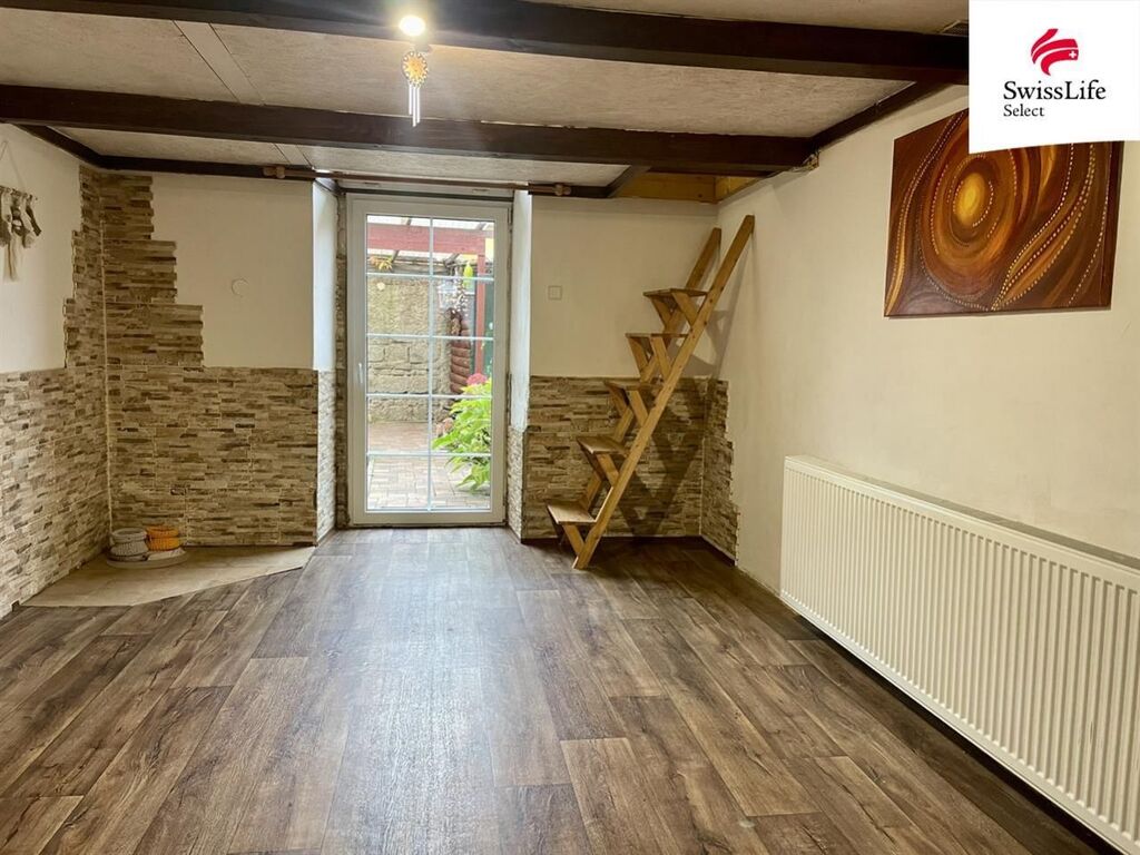 Byt má svoje kouzlo, je netradiční a zajímavý. Zahrádka za domem je na městském pozemku, sousedí s dvěma dalšími byty, kdy tento je uprostřed.
