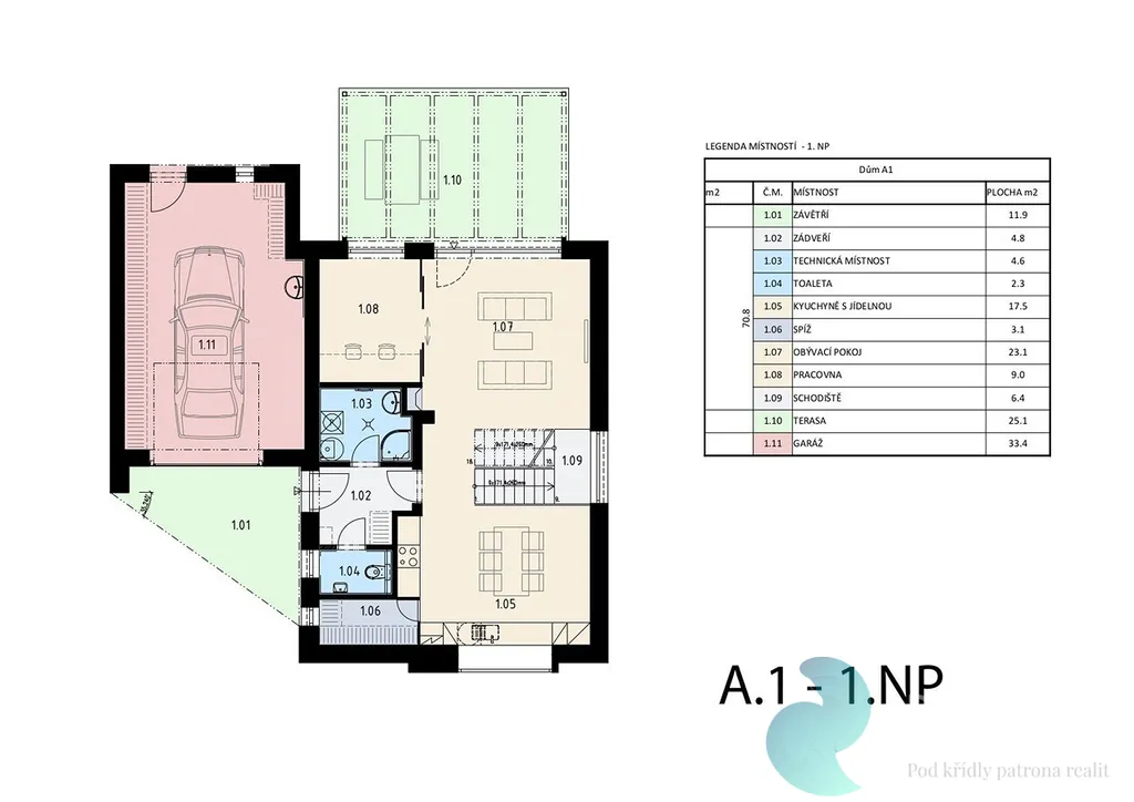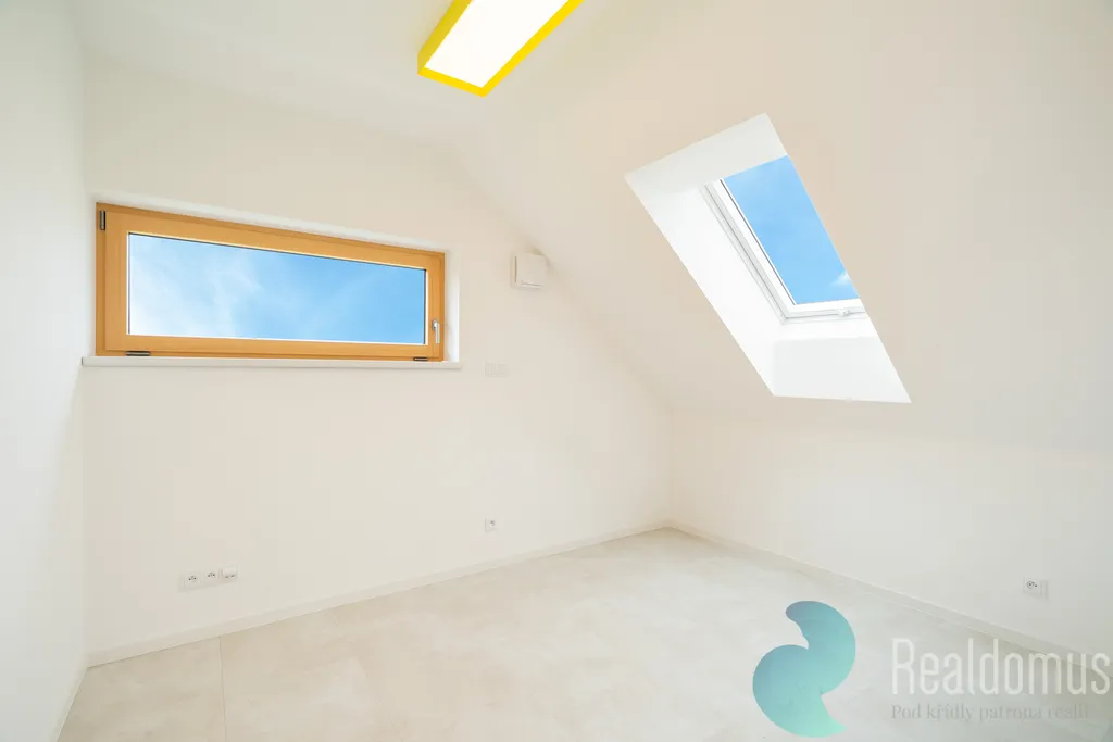 Navržen s ohledem na energetickou úspornost – třída B, s možností připojení na plynovou přípojku do budoucna. Dům s obytným podkrovím nabízí moderní, a přitom nadčasovou architekturu. Čisté linie a kombinace fasádních materiálů vytvářejí příjemný vizuální dojem i vkusný kontrast.