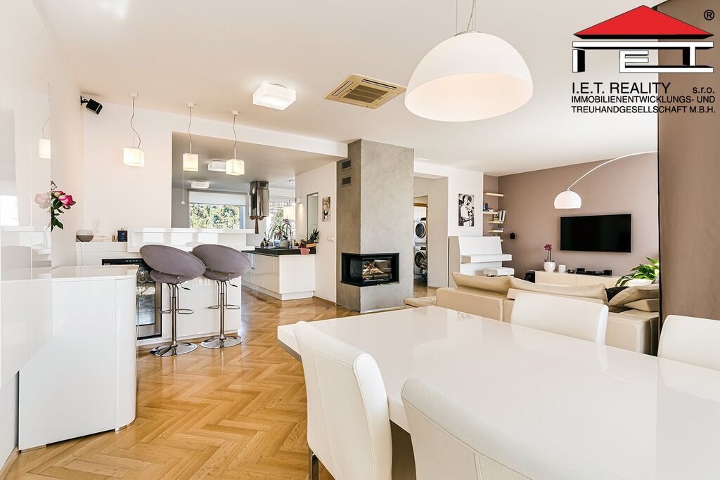 Prodej luxusní, rodinné rezidence, nacházející se v jedné z nejvyhledávanějších brněnských lokalit. Jedná se o čtyřpodlažní budovu s bazénem, saunou, zahradou a vinným sklepem. V 1.NP se nachází vstupní hala se schodištěm a socálním zařízením, dvě samostatné místnosti využívané v současné době jako ordinace terapeuta, technické zázemí domu, průjezdná garáž pro dva vozy a vstup do venkovního traktu. Ve 2.NP je situovaná moderní kuchyně s jídelnou a vstupem na terasu s posezením, obývací část s krbem, pokoj pro hosty se socálním zázemím a prádelna. Ve 3.NP najdete 3 samostatné pokoje využívané jako ložnice, dětský pokoj a pracovna s posilovnou a dále velkoryse prostorná koupelna s venkovní terasou. V zahradním atriu je pak vybudované zpevněné zelené posezení, studna a stavba bazénu se saunou, vlastním sociálním zázemím a místnost pro bazénovou technologii. Nemovitost je ve vynikajícím, stavebně technickém stavu, bez nutnosti dalších investic, okamžitě obyvatelná. Její pohodlí a klidnou atmosféru můžete částečně vychutnat již při první, informační prohlídce, ke které Vás srdečně spolu s majiteli zveme. Budova prošla kompletní rekonstrukcí se zateplením.