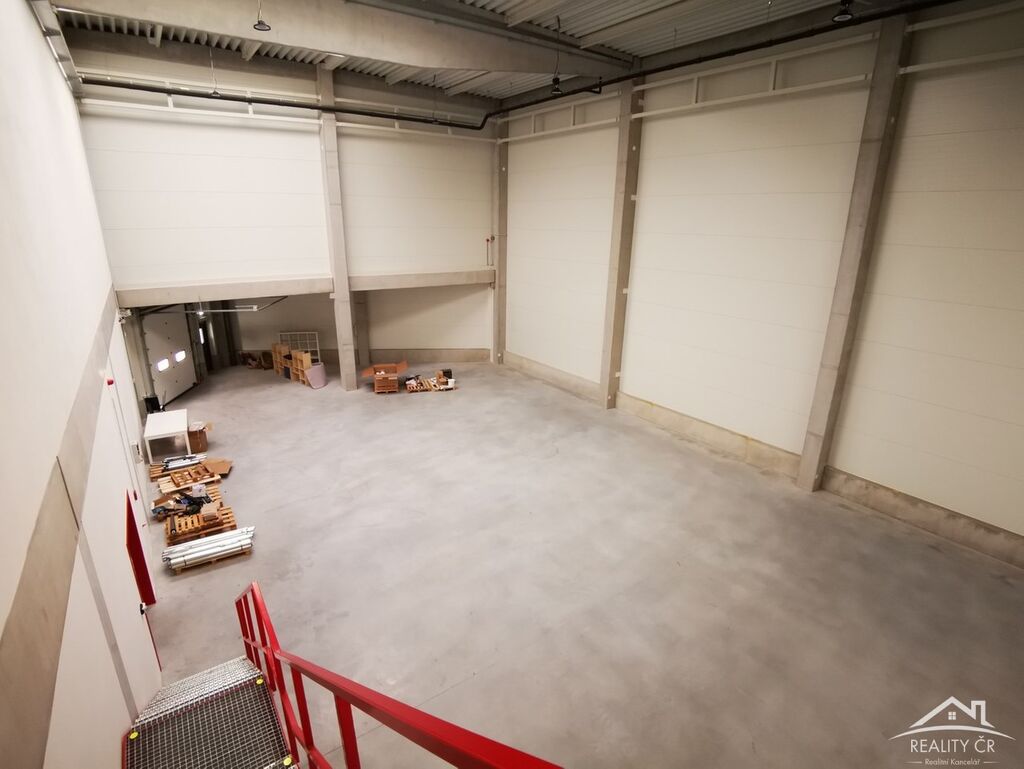 Pronájem nové skladovací haly 757m2 v přízemí + patro 172m2 + showroom + kanceláře a sociální zázemí v Jihlavě na Pávovské ulici nedaleko přivaděče na D1. Po dohodě možnost využití i dalších kancelářských prostor ve vedlejší budově. Parkoviště u haly. Cena na dotaz podle pronajaté plochy. Volné ihned.