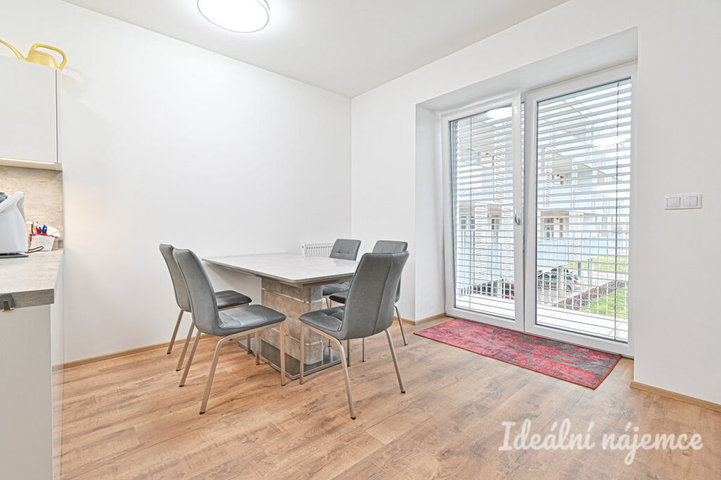 Byt se nabízí vybavený dle fotografií. Moderní kvalitní kuchyně disponuje lednicí, myčkou, elektrickou troubou, varnou deskou, mikrovlnnou troubou a digestoří, zbytek místnosti je dovybaven jídelním stolem včetně židlí, sedací soupravou a TV stolkem. Ložnice je vybavena skříní na míru a kvalitní manželskou postelí. V koupelně je vana, umyvadlo se skříňkou a žebříkový radiátor. Toaleta je oddělena. Ve vstupní chodbě je zabudována prostorná vestavná skříň s dostatkem úložného prostoru. Velkou výhodou bytu je ještě jedna menší oddělená místnost, kterou lze využít jako šatnu, pracovnu nebo menší dětský pokoj.