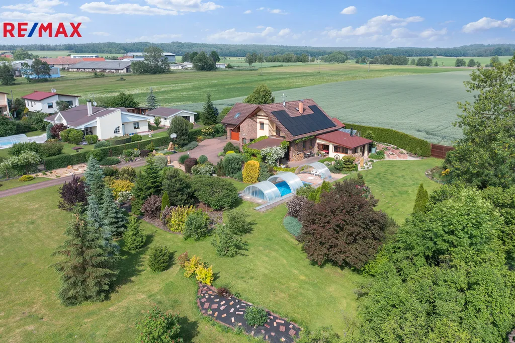 Dům je umístěn v zadní části pozemku, což zajišťuje dostatek soukromí od sousedů.