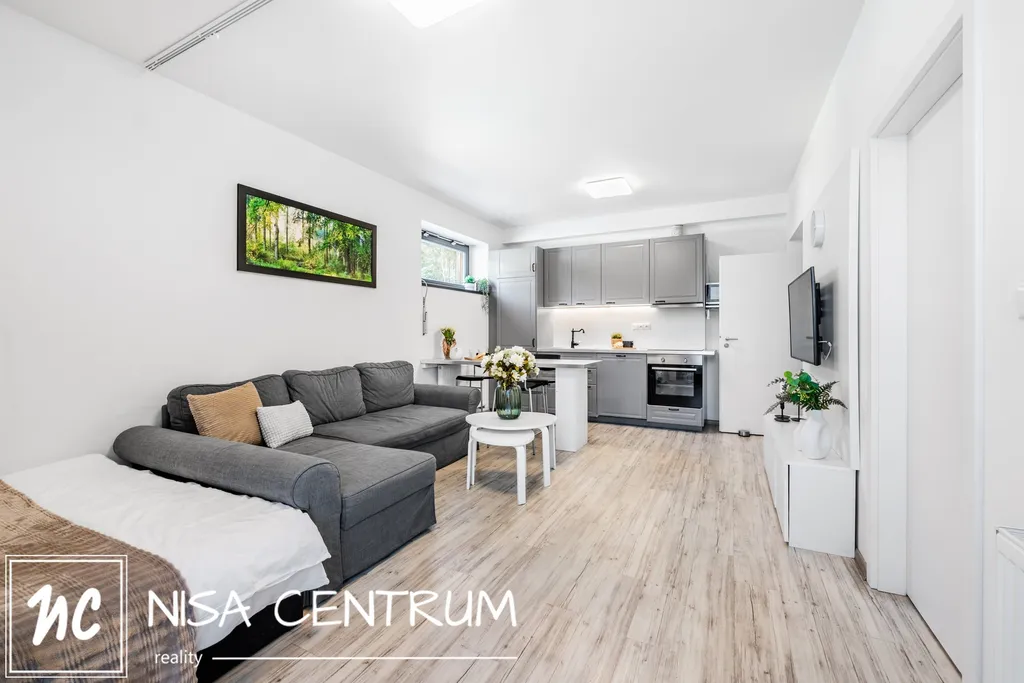 Dispozici plně vybaveného bytu tvoří vzdušný obývací pokoj s kuchyňským koutem a lodžií orientovanou na severozápad, ložnice, koupelna s prostorným sprchovým koutem a toaletou, vstupní chodba a technická místnost.