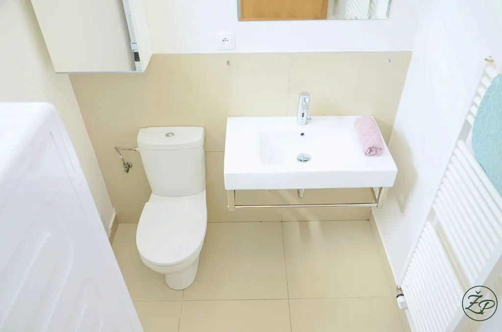 Dispozice: 1. NP (přízemí) = zádveří, jež vyúsťuje na terasu a zahradu; vstupní hala ze které je přístup na toaletu (vybavena pračkou a sušičkou); dále je z haly přístupný prostorný obývací pokoj (35.75m2), který je spojen s kuchyní, spižírnou a jídelnou. Kuchyně je nadstandardně vybavena těmito spotřebiči: Aquaphor – reverzní osmotický filtr pitné vody, indukční varná deska, digestoř, trouba, myčka nádobí, lednice s mrazničkou, mikrovlnná trouba. Z obývacího pokoje je 2x vstup na terasu a zahradu přes francouzské dveře.