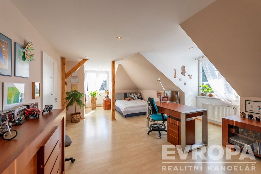 Patro: tři pokoje (jeden velmi prostorný), šatna, samostatné WC a velká koupelna s vanou a prostorem pro domácí fitness.