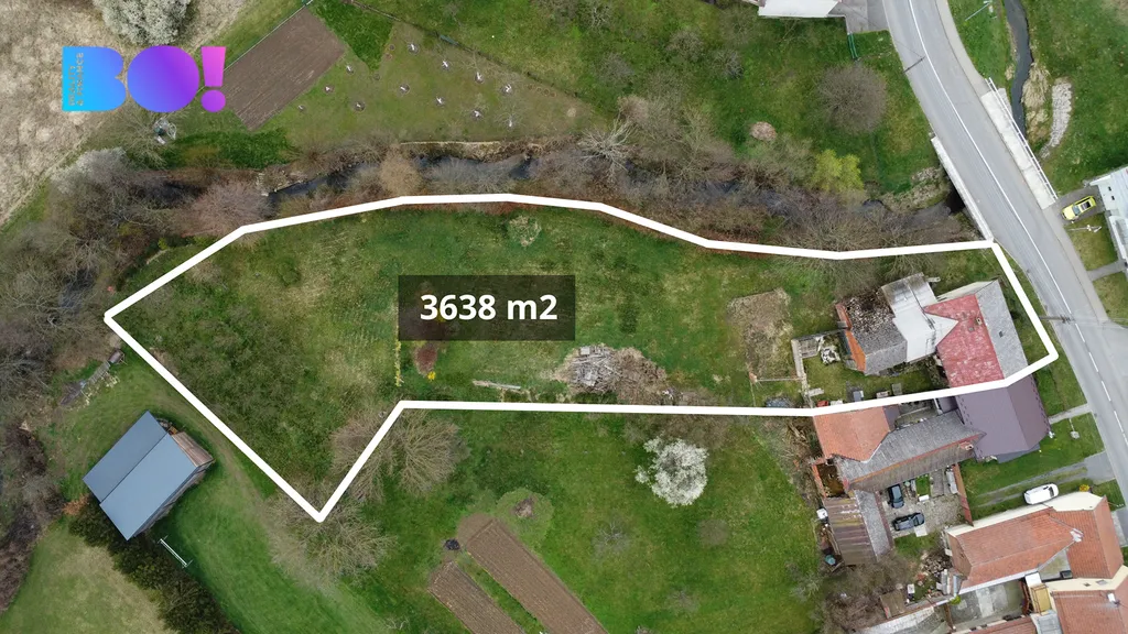 Celková plocha rovinatého pozemku činí 3 638 m², což poskytuje dostatek prostoru pro rozvoj aktivit, realizaci výstavby nového rodinného domu nebo rekonstrukci stávající původní stavby.
