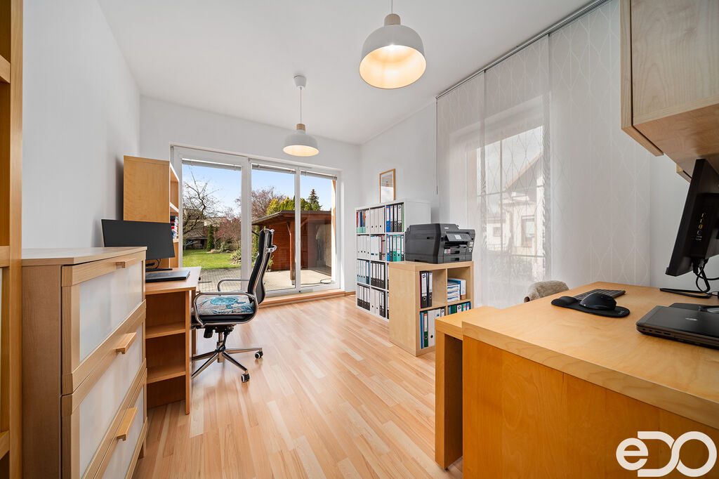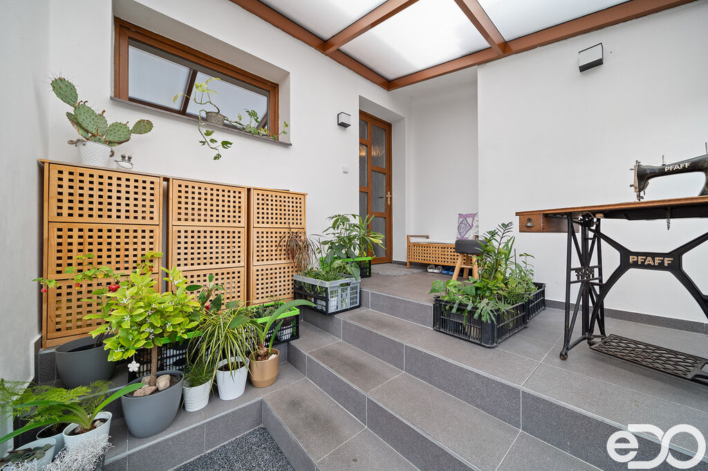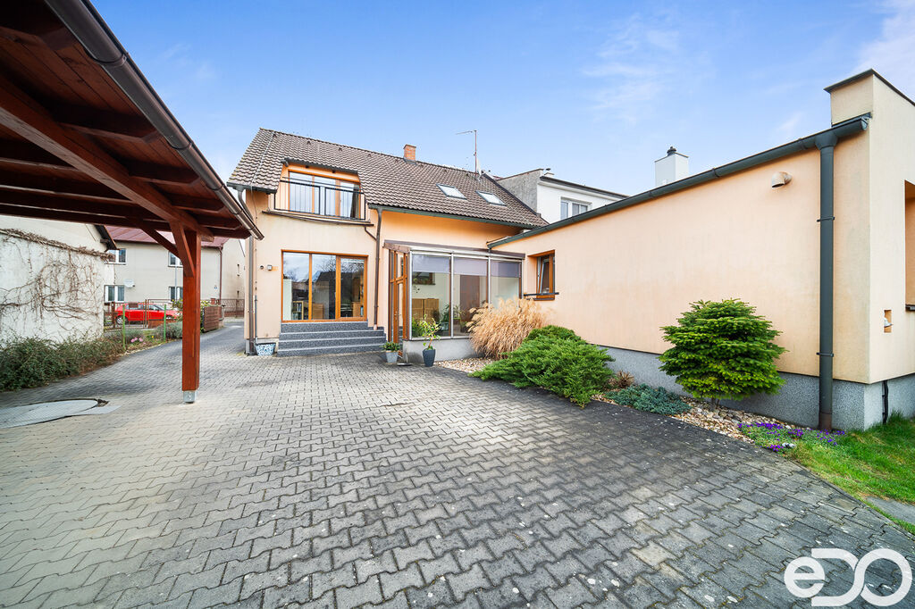 Vytápění v domě je variabilní. Hlavní možností zdroje tepla včetně ohřevu teplé vody je plynový kotel s radiátory a rozvody v celém domě. Navíc se nachází v přízemní koupelně podlahové vytápění. K pohodovému bydlení a zvýšení komfortu přispívá klimatizace v podkroví, kterou je možno využívat celoročně. Voda je obecní, na pozemku je i studna. Příjezd k objektu z hlavní komunikace vede mezi sousedními rodinnými domy. Vlastní parkování je možné přímo před domem nebo na dvoře skrze automatickou bránou. Celou prostornou zpevněnou plochu za domem je možno využít až pro 3 os. auta. Místnosti v domě, jejichž velikost a rozmístění nadchnou každého zájemce a zejména toho, který zvažuje vyměnit byt za dům v klidné části krajského města a přitom pár minut od centra Proto hledáme náročného zájemce, který využije celý potenciál domu. Pokud vás nemovitost zaujala, zavolejte a domluvíme si prohlídku.