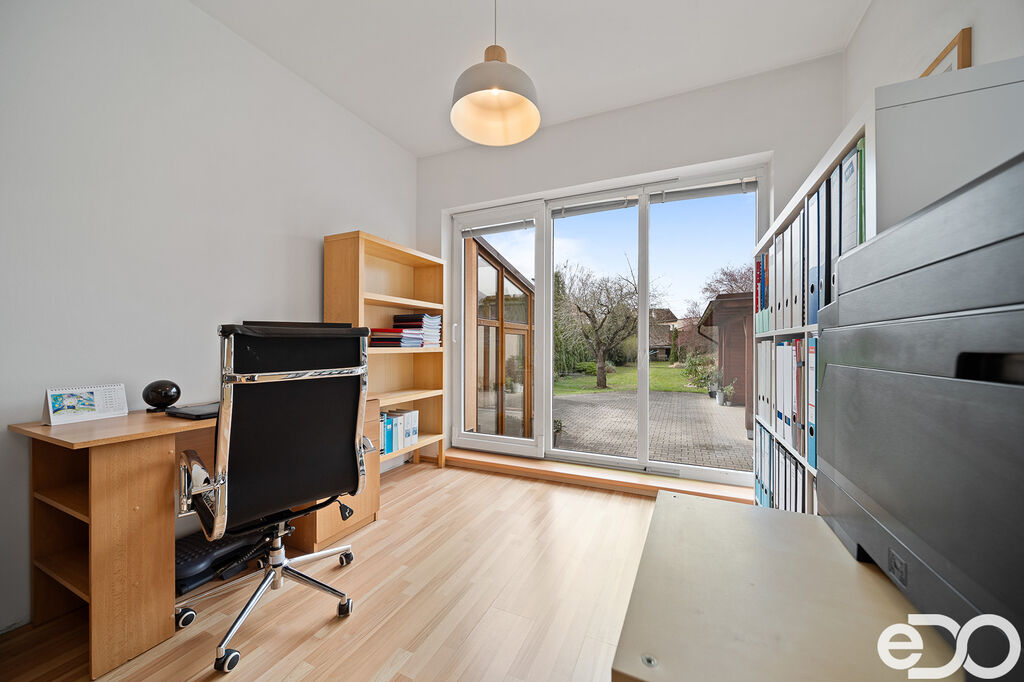 Vnitřní dispozice v přízemí: vstupní zádveří (veranda), kuchyň, obývací pokoj, pracovna s francouzským oknem, koupelna s vanou a WC.