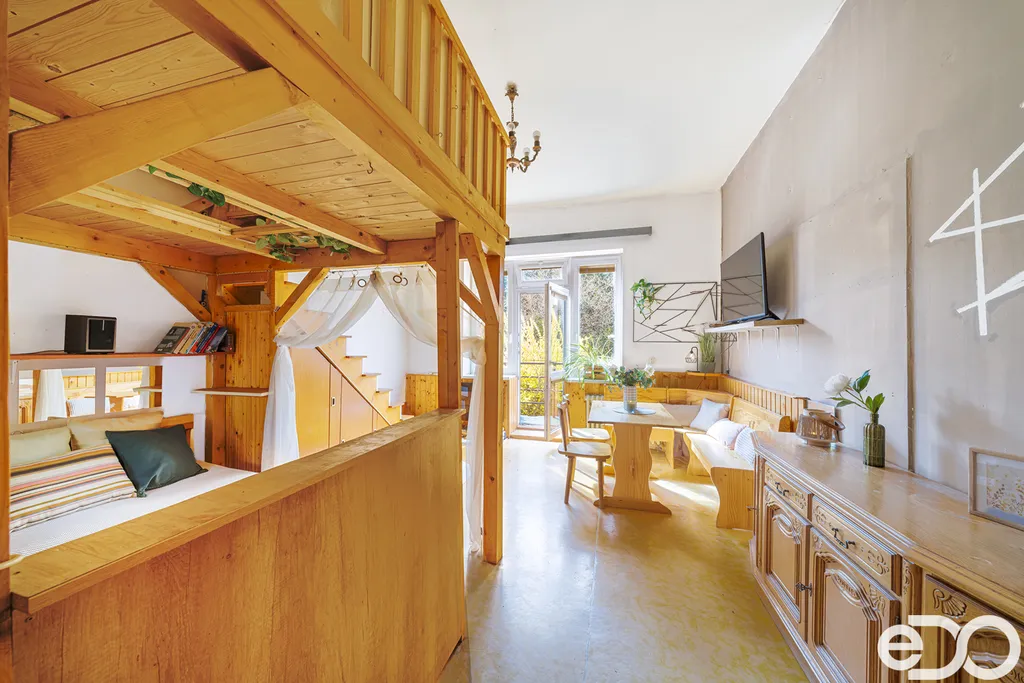 Byt má terasu s výhledem do zahrady, samostatné WC a koupelna jsou po rekonstrukci.