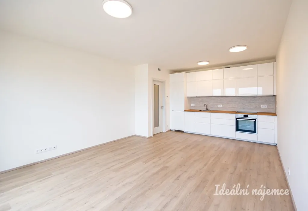 Byt je částečně vybavený – moderní kuchyňská linka je osazena kvalitními vestavěnými spotřebiči: myčka nádobí, lednice s mrazákem, indukční varná deska, elektrická trouba a digestoř. Otevřený obývací prostor plynule navazuje na kuchyň a poskytuje přímý vstup na lodžii orientovanou do klidného vnitrobloku.
