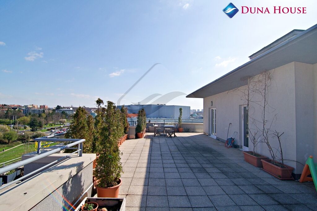 K pronájmu nabízíme prostorný byt s velkorysou terasou o výměře 100 m² v šestém patře bytového domu na Praze 10 s vlastním garážovým stáním.