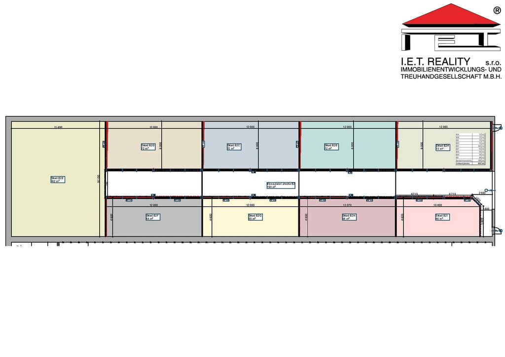 Druhá hala (C1) je o výměře 101 m². Cena nájmu u této haly je 11.000 Kč/měsíc (109 Kč/m²)