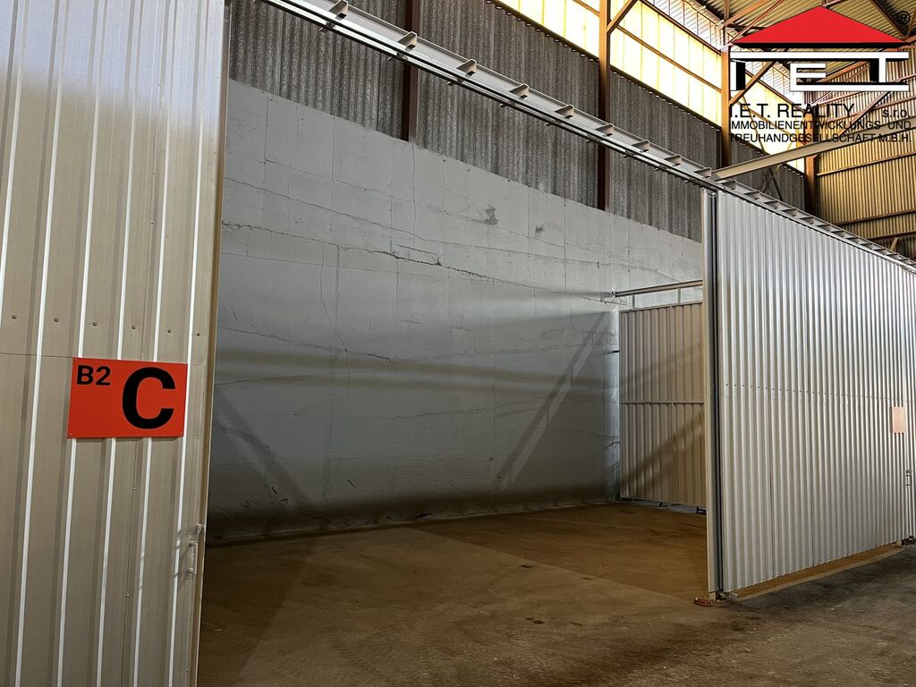 První hala (B2) o celkové ploše 852 m² je rozdělena do samostatných skladových kójí o velikosti od 48 až po 162 m² . Aktuálně jsou k dispozici skladové kóje o velikosti 48 m² (1*), 55 m² (3*), 72 m² (2*) a 162 m² (1*). Cena nájmu je ve výši 120 Kč/m² a cena služeb je 1000 Kč/měsíc ke každé jednotlivé kóji. Výška haly je cca 14 metrů a do výšky 7 metrů jsou betonové stěny a nad nimi ocelová konstrukce opláštěná plechem, možnost přidat kamerový a zabezpečovací systém. Rozměr vrat je cca 5×5 metrů. Vhodné pro dlouhodobé skladování.