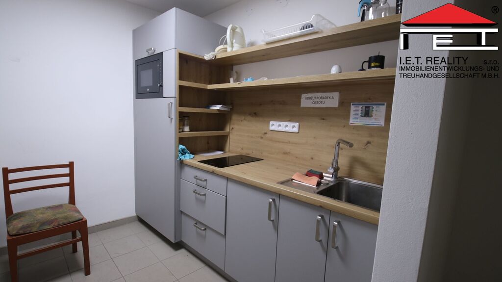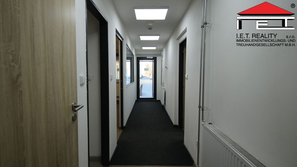 V prvním patře se nacházejí kancelářské prostory pro administrativu a zázemí firmy o výměře 205 m². Naleznete zde kromě krásných kanceláří také šatny, sociální zázemí a vybavenou kuchyňku.