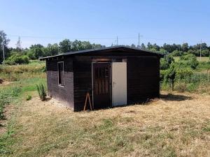 Dřevěná chata je umístěna na betonové základové desce a zastavěná plocha je 26 m2. Chatu tvoří vodorovné a svislé nosné trámy o šířce 120x120mm. Ty jsou z venkovní strany obity prkny. Střecha je z trámů a fošen, opět obity prkny. Schází plechová střešní krytina. Nemovitost má číslo evidenční a skládá se z velkého hlavního prostoru, dále místnosti na suché WC, menší dílny a venkovní terasy. Vše o celkové výměře 24,75 m2. Chata je dále vybavena menším, cihlovým sklepem. Elektřina aktuálně odpojena. Řádová voda je přivedena na pozemek.