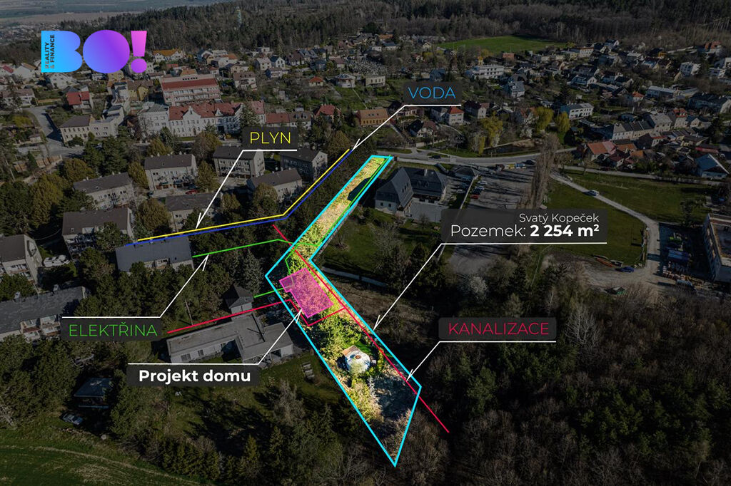 Exkluzivně nabízíme k prodeji rozsáhlý stavební pozemek se schváleným stavebním projektem o celkové rozloze 2 254 m² v klidné a rodinné lokalitě Svatý Kopeček, jen kousek od Olomouce. Tento pozemek je ideálním místem pro výstavbu dvoupatrového domu o dispozici 4+kk s garáží, který má zastavěnou plochu 137 m² a užitnou plochu 180 m². V tomto projektu se snoubí moderní architektura s funkčním uspořádáním interiéru, které je přizpůsobeno pro pohodlný život rodiny s dětmi.