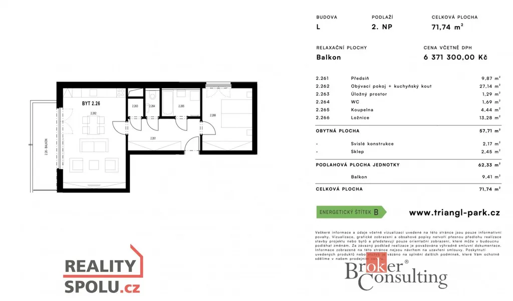 Na prodej zcela nový byt ve výstavbě o dispozici 2+kk s balkonem ve druhém podlaží jedinečného projektu Triangl Park Plzeň. Bytová jednotka je v rámci 3. etapy projektu umístěna v budově K a nabízí výhled do zeleně mezi domy.