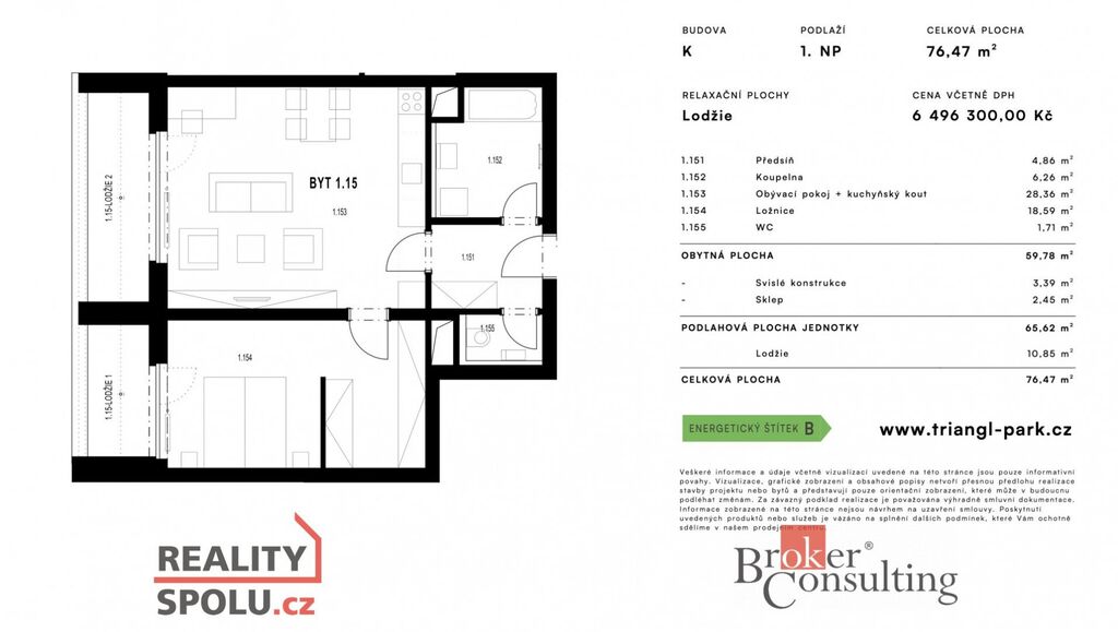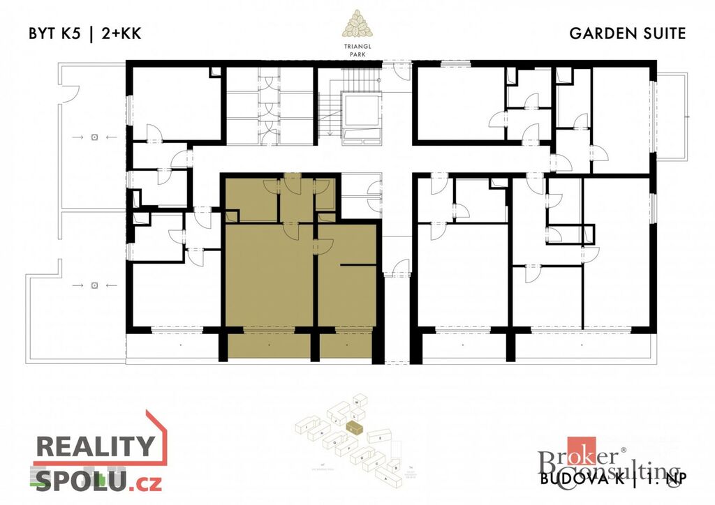 Na prodej zcela nový byt ve výstavbě o dispozici 2+kk se dvěma lodžiemi v prvním podlaží jedinečného projektu Triangl Park Plzeň. Bytová jednotka je v rámci 3. etapy projektu umístěna v budově K a nabízí výhled do zeleně mezi domy.