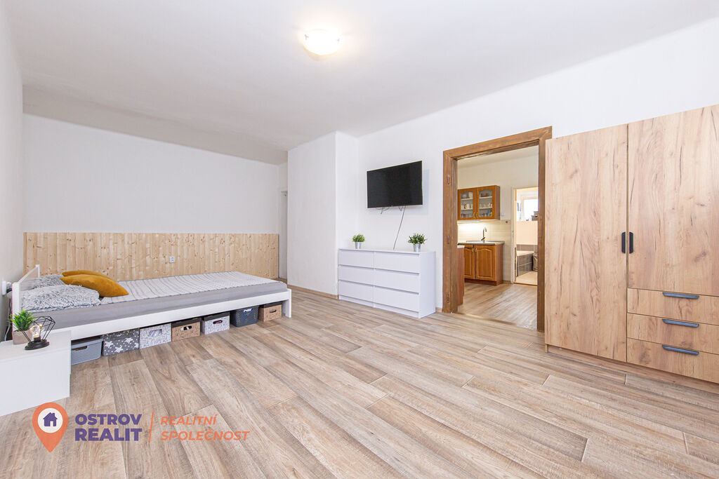- Modernizovaný byt s prostorným obytným prostorem, samostatnou kuchyní, koupelnou a praktickou spíží.