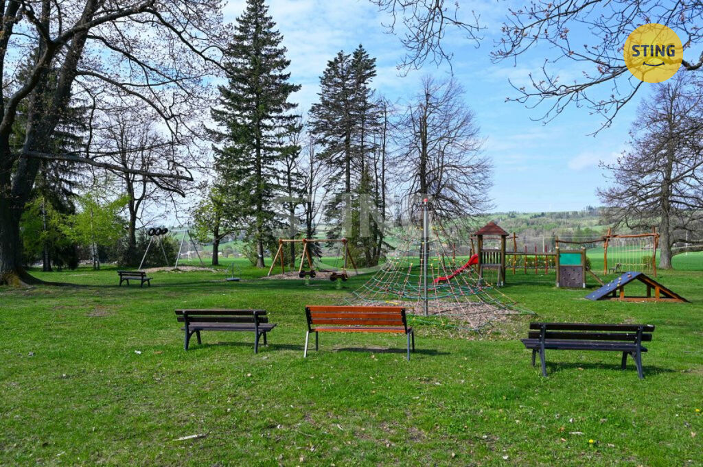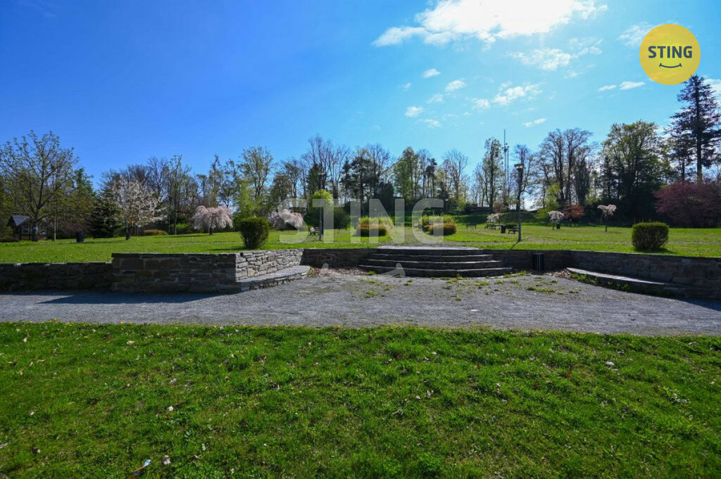 Svažitý a částečně oplocený pozemek sousedí s městským parkem a křížovou cestou. Využití terénu umožnilo vytvoření teras a efektní skalky vzniklé odkopáním části bývalého lomu. Na pozemku se nachází dřevěná přízemní budova sloužící jako dílna, betonová nádrž na dešťovou vodu s možností vybudování umělého kaskádovitého vodopádu a parkovací místo pro 1-2 vozidla, obytný vůz nebo menší loď.