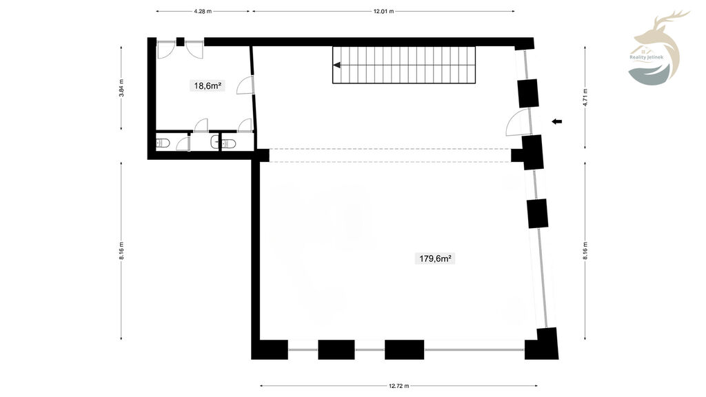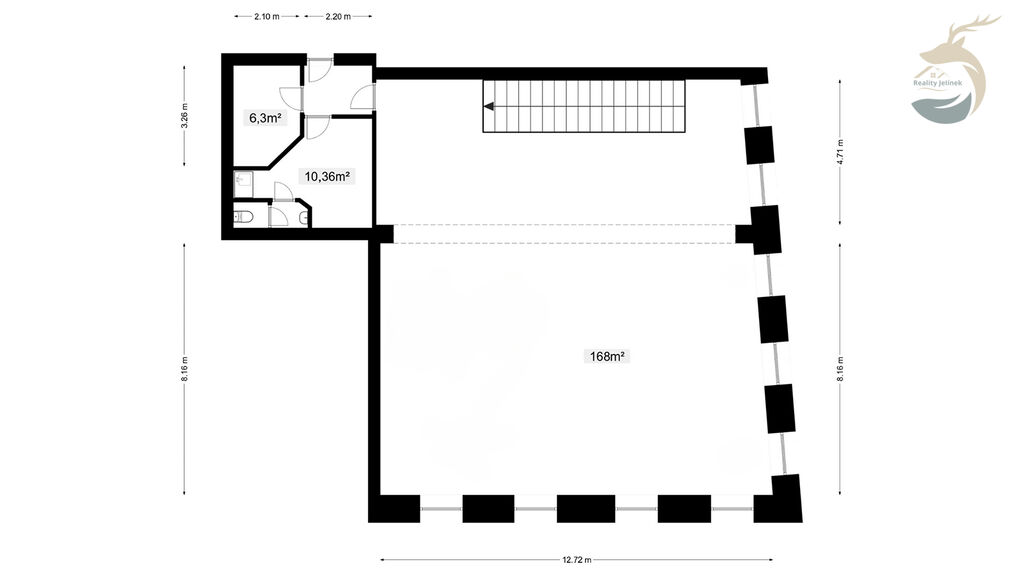 1. NP (202,10 m²) – 2. NP (190,40 m²) zavedený obchodní prostor, aktuálně dlouhodobě pronajatý silnému nájemci z oblasti maloobchodu