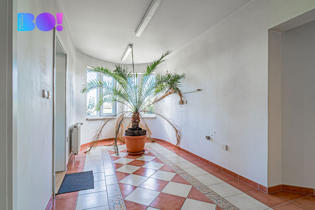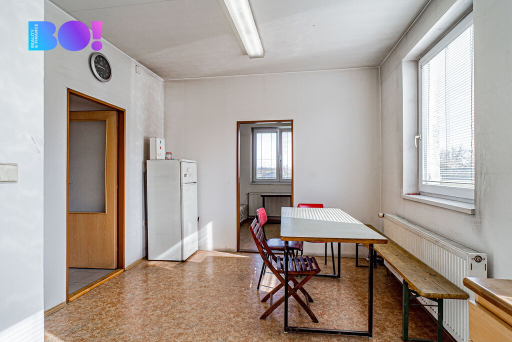 Administrativní dvoupodlažní budova s kancelářemi a jednacími místnostmi je udržovaná, k dispozici je sociální zařízení a je zde možnost vybudování minimálně jednoho bytu.