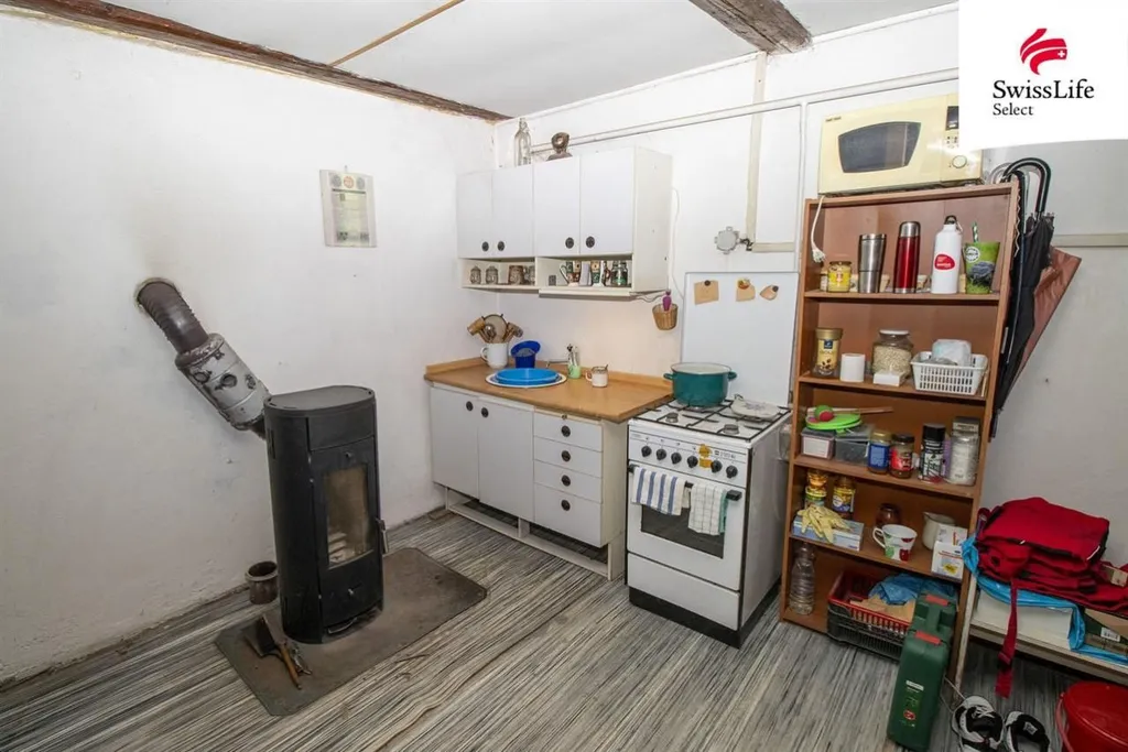 První je původní- kuchyň, koupelna , velká obytná místnost a sklep. Tato část je před rekonstrukcí