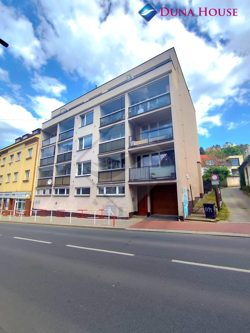 Byt se nachází ve třetím podlaží čtyřpatrového cihlového domu s výtahem a jeho celková plocha činí 76,3m2 - včetně 4,8m2 lodžie a 1,5m2 sklepní kóje.