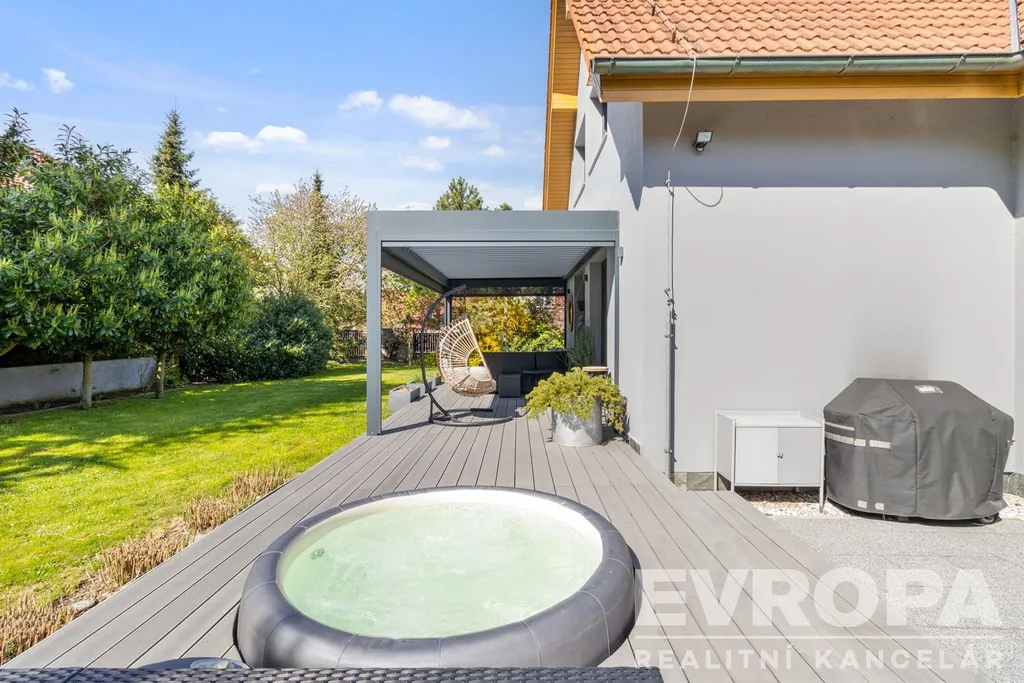 Jedním z hlavních benefitů nemovitosti je samotný pozemek a jeho umístění. Zahrada poskytuje vysokou míru soukromí, dostatek prostoru pro rodinné aktivity, relaxaci i setkávání s přáteli. Příjemnou atmosféru doplňuje otevřený výhled do okolní krajiny, který umocňuje pocit klidu a odstupu od městského provozu.