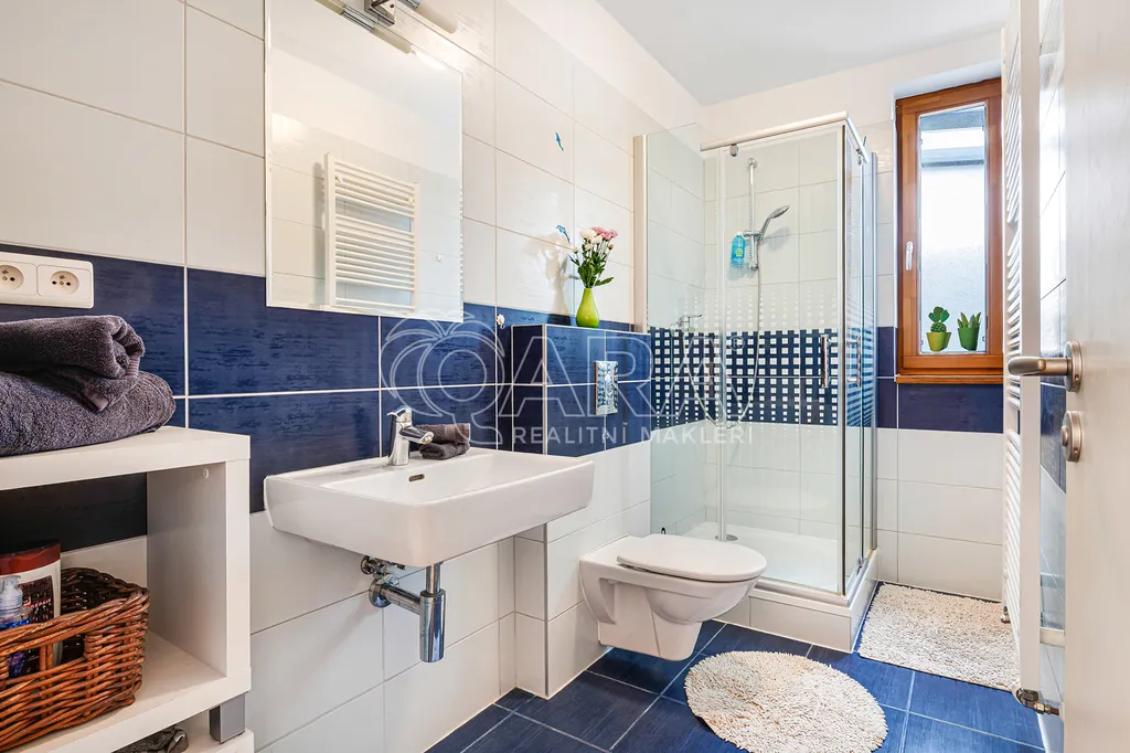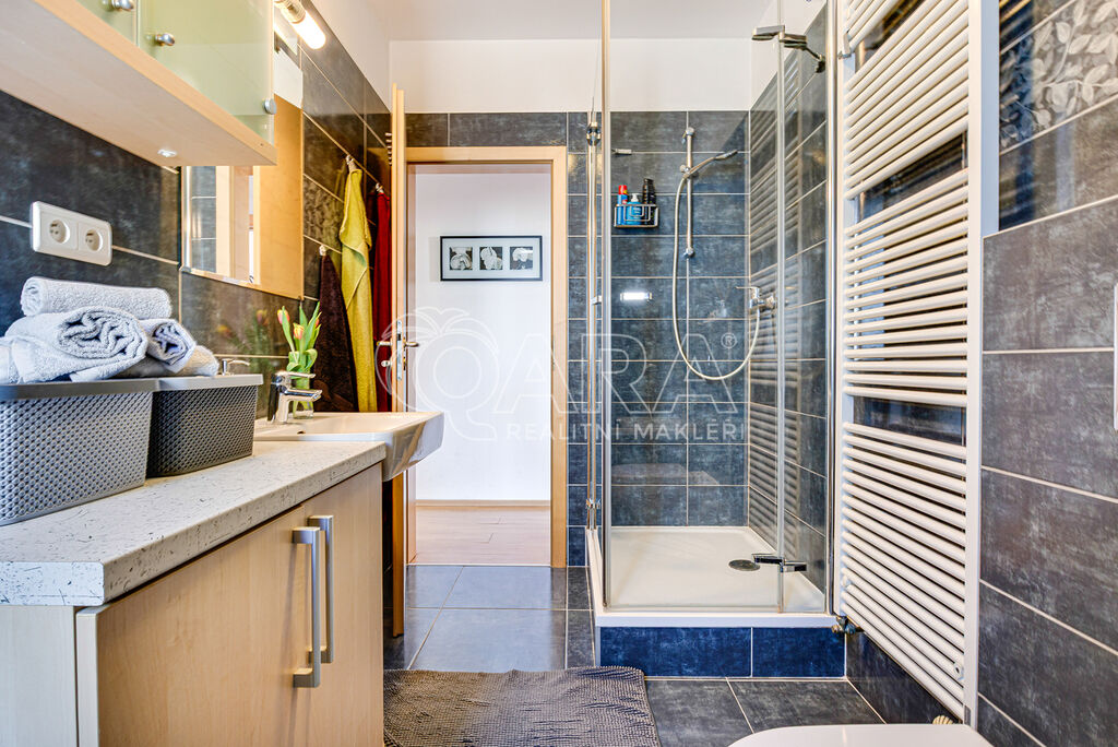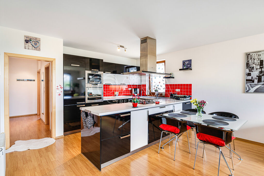 Dominantou celého domu je obývací pokoj o velikosti 42 metrů čtverečních, s úžasným výhledem do zahrady a přímým vstupem na terasu. Díky vysokému plotu si na zahrádce o velikosti 139 metrů čtverečních můžete užívat nerušeného soukromí nebo si užít pohodu s přáteli, třeba při grilování. V kuchyňské části domu najdete kompletně vybavenou kuchyňskou linku s plynovým sporákem, horkovzdušnou i mikrovlnou troubou, vestavnou lednicí s mrazákem a myčkou. Kuchyně díky své velikosti nabízí také dostatek úložných prostor.