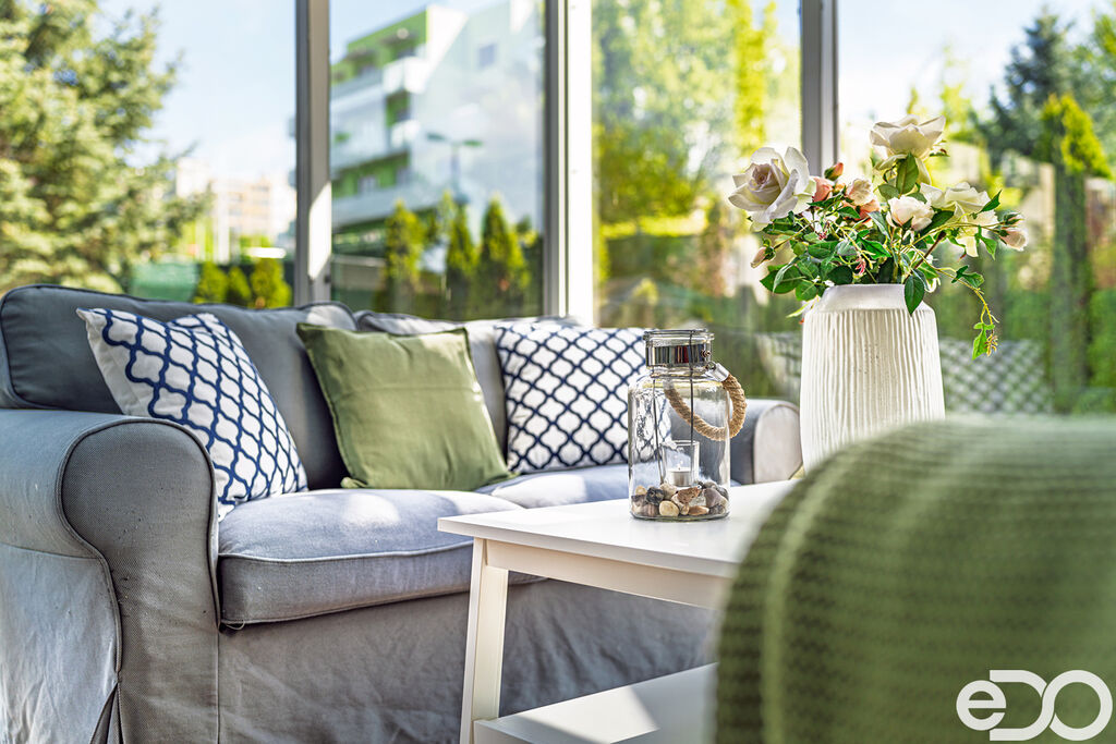 V bytě se nachází předsíň, chodba s vestavěnou skříní, prostorná kuchyně, obývací pokoj s malým plynovým krbem a vstupem na zimní zahradu, koupelna se samostatnou toaletou, ložnice a pokoj se vstupem na zahradu.